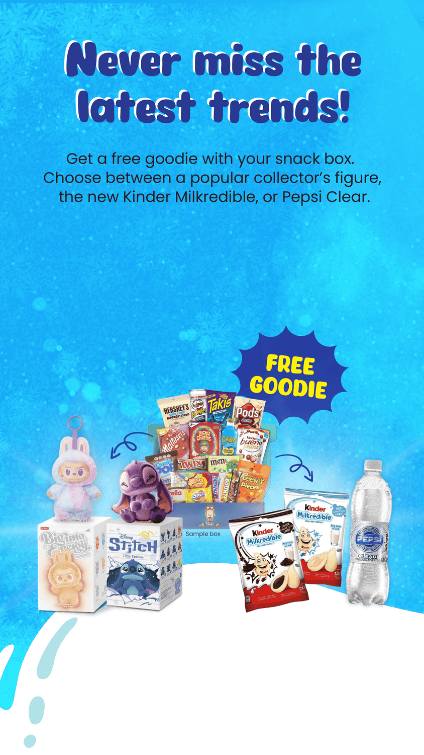 Tilmeld dig i dag og oplev et smagfuldt snackeventyr rundt om i verden. Denne måneds snackbox byder på følgende godbidder