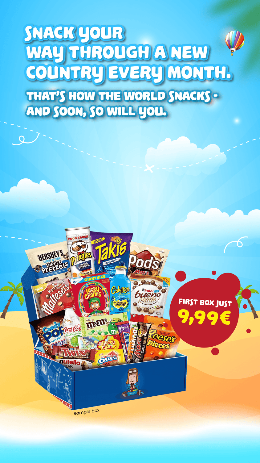 Набавите своје месечне ужине из целог света. Сваког месеца нова земља, нове грицкалице и нова укусна авантура ексклузивних производа које не можете лако да пронађете у вашој локалној продавници.